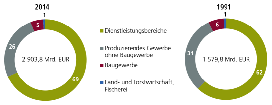 Zum primären Sektor zählen die Land- und Forstwirtschaft und die Fischerei. Der primäre Sektor wird auch als Urproduktion bezeichnet. Zum sekundären Sektor zählen der Bergbau und die Gewinnung von Steinen und Erden, das verarbeitende Gewerbe, die Energieversorgung, die Wasserversorgung, Abwasser- und Abfallentsorgung und die Beseitigung von Umweltverschmutzungen sowie das Baugewerbe. Die Wirtschaftszweige des sekundären Sektors werden in ihrer Gesamtheit auch als „produzierendes Gewerbe“ bezeichnet. Der tertiäre Sektor umfasst die Dienstleistungsproduktion von rechtlich selbständigen Unternehmen, privaten und öffentlichen Einrichtungen sowie Gebietskörperschaften. Zum tertiären Sektor zählen also z. B. Handel und Verkehr, Finanz- und Versicherungsleistungen bzw. Grundstücks- und Wohnungswesen.